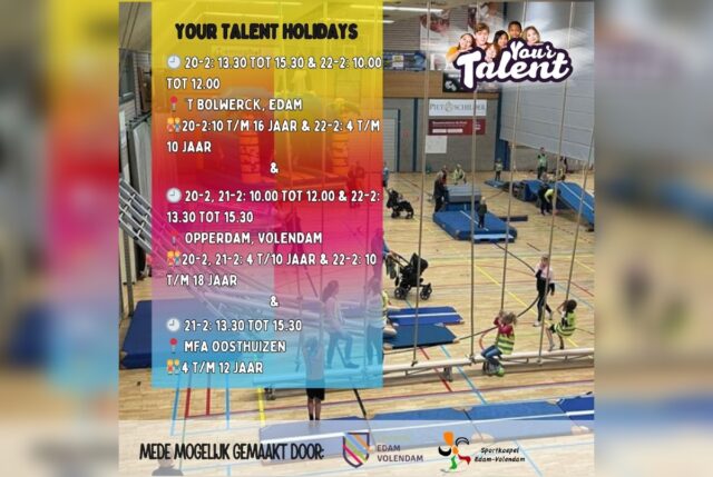 Maak tijdens Your Talent Holidays in korte clinics van 30 minuten kennis met diverse sporten op drie verschillende locaties in onze gemeente. Deze clinincs zijn geschikt voor kinderen in de […]