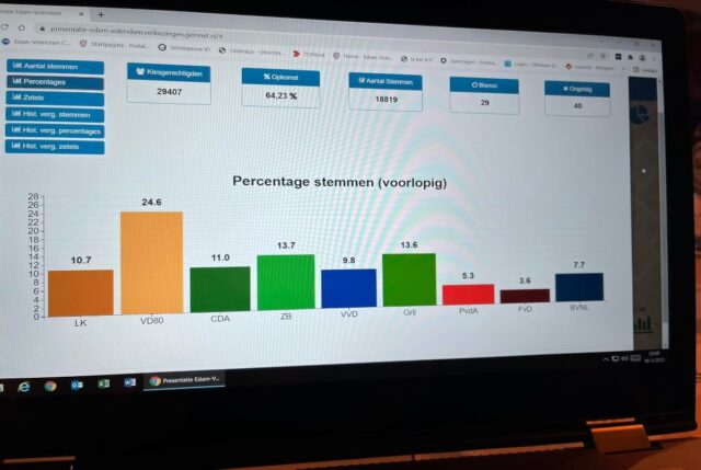 Gemeente Edam-Volendam – De voorlopige uitslag, de definitieve verkiezingsuitslag wordt pas maandag verwacht, laat een overduidelijke winnaar zien in de gemeente Edam-Volendam. Met 24,6% van de stemmen is Volendam ’80 […]