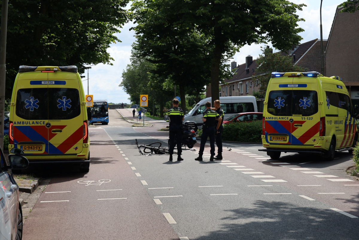 In de Bovenlandsestraat te Purmerend heeft vanochtend rond kwart voor twaalf een aanrijding plaatsgevonden tussen een fietser en een scooterrijder.