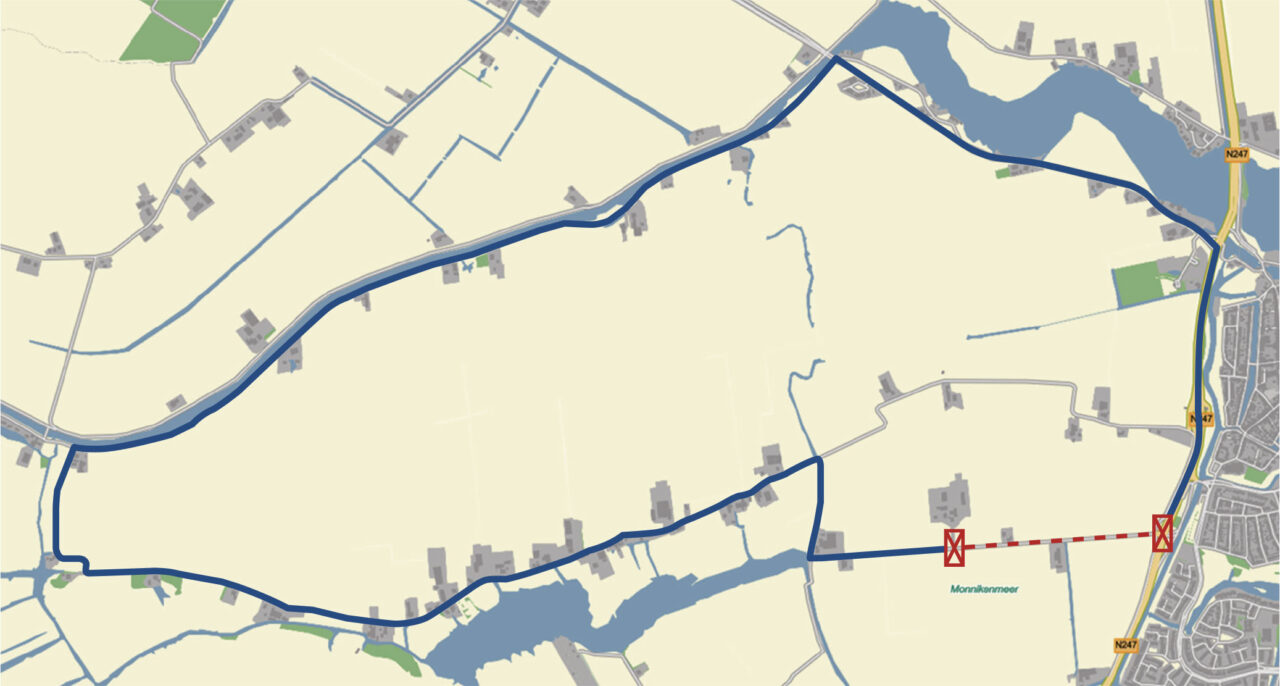 Van 13 april 6.00 uur tot 26 april 2026 16.00 uur is de aansluiting van Overleek, Monnickenmeer en Jaagweg op de N247 volledig afgesloten voor verkeer.