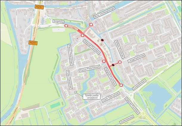 - Verkeer aan de westkant van de Dijkgraaf Poschlaan, zoals Paulus Pietersstraat en Pieter Claesstraat, worden via een stuk fietspad omgeleid richting de Zuiderzeeweg.