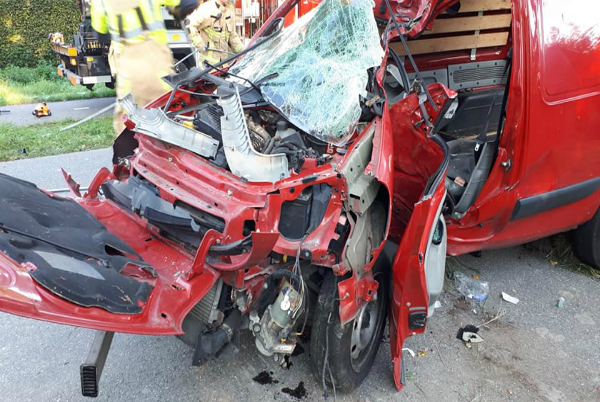 De hulpdiensten waren massaal aanwezig. De man is inmiddels uit zijn auto bevrijd door de brandweer. Hij is meegenomen naar het ziekenhuis. Er waren geen andere auto’s bij het ongeval betrokken.