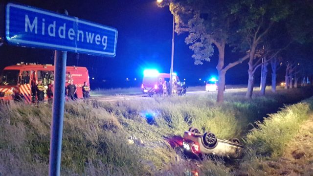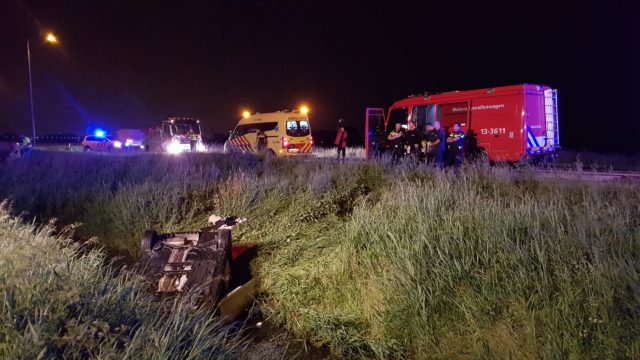 Zijn auto kwam op z’n kop in het water terecht, maar de bestuurder kon op eigen kracht uit de auto komen, zo vertelt een ooggetuige aan NH Nieuws. Hij is door ambulancepersoneel gecontroleerd en hoefde niet mee naar het ziekenhuis.