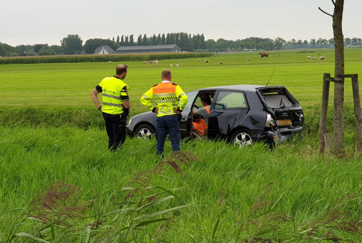 De automobiliste is met onbekend letsel naar het ziekenhuis gebracht.