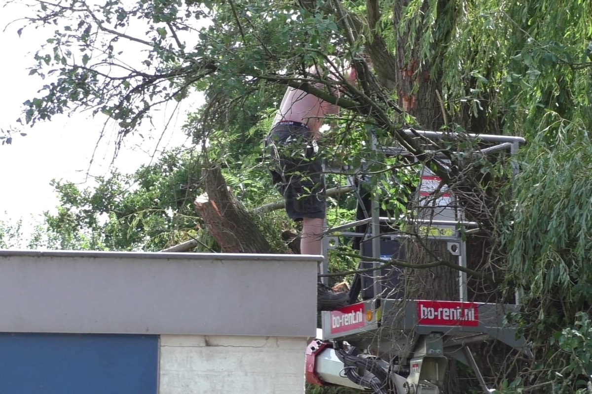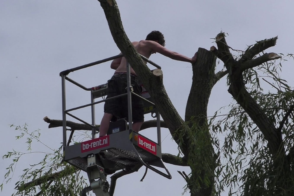 Aan de gelijknamige straat was de man een hoge boom aan het snoeien met behulp van een gehuurde hoogwerker. Op een gegeven moment was er geen beweging meer in de hoogwerker te krijgen. Hulpeloos belde de man de brandweer op om hem te redden.