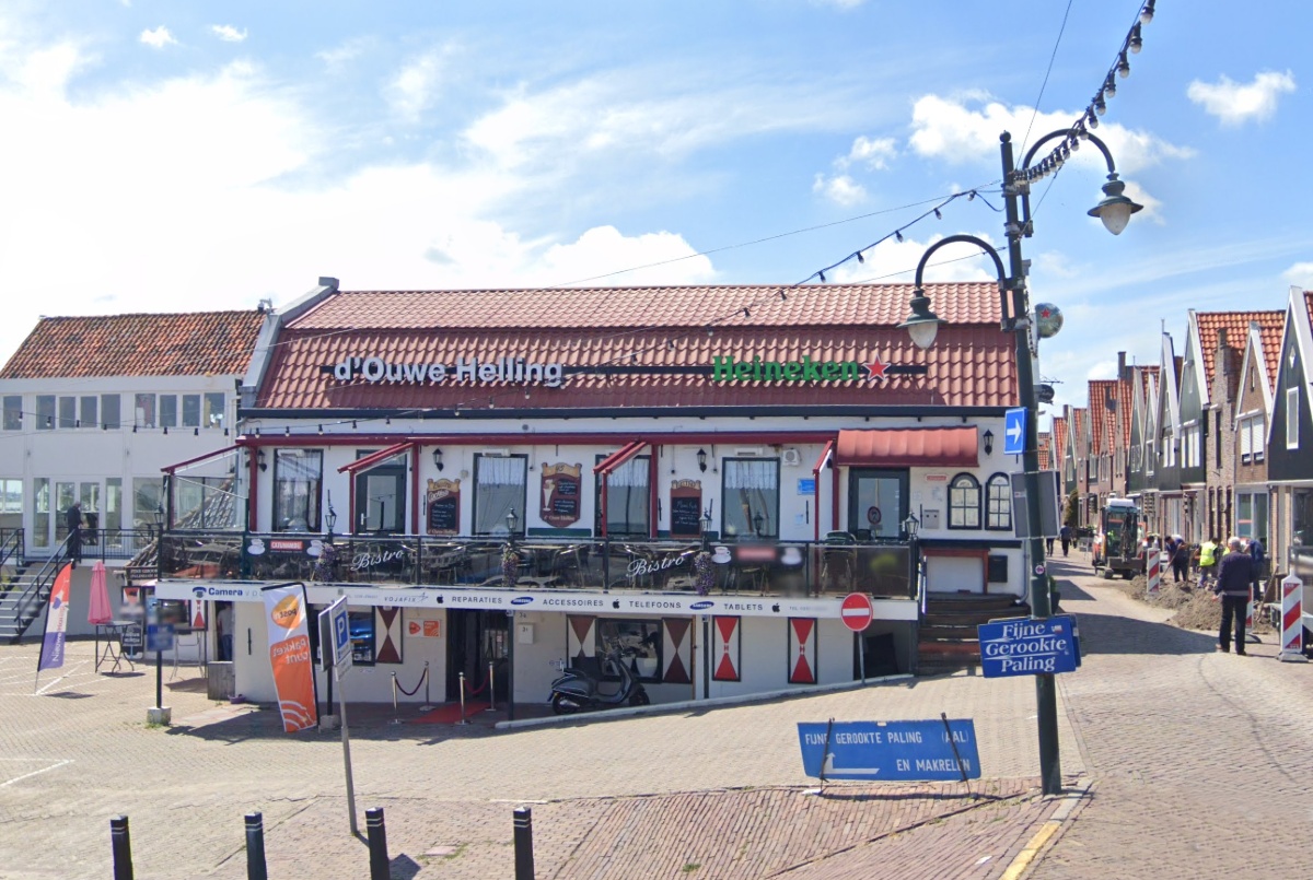 Het karakteristieke witte pand aan de Volendamse Haven was ooit een werkplaats van een scheepswerf, tot het in de jaren ’50 van de vorige eeuw een horecafunctie kreeg. De vraag is nu of dit in de toekomst ook horeca blijft, want de huidige eigenaar heeft verklaard dat d’Ouwe Helling failliet is gegaan.