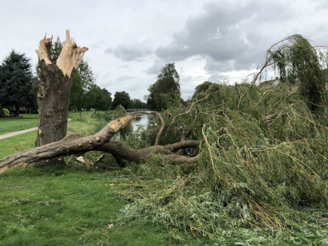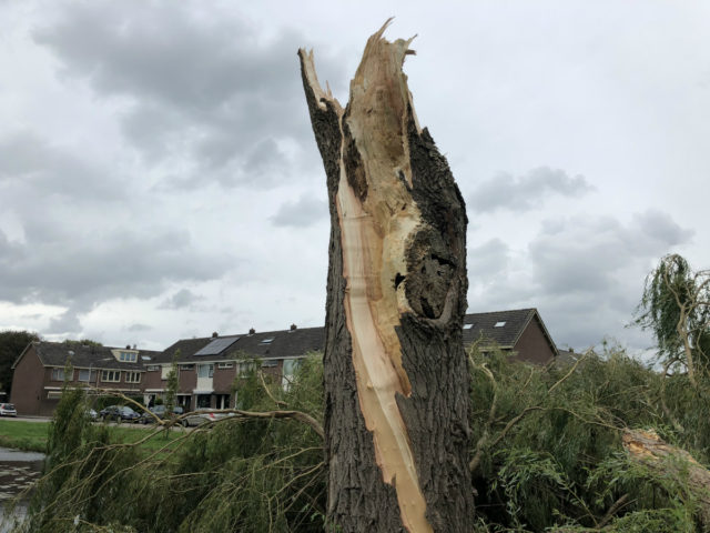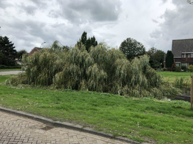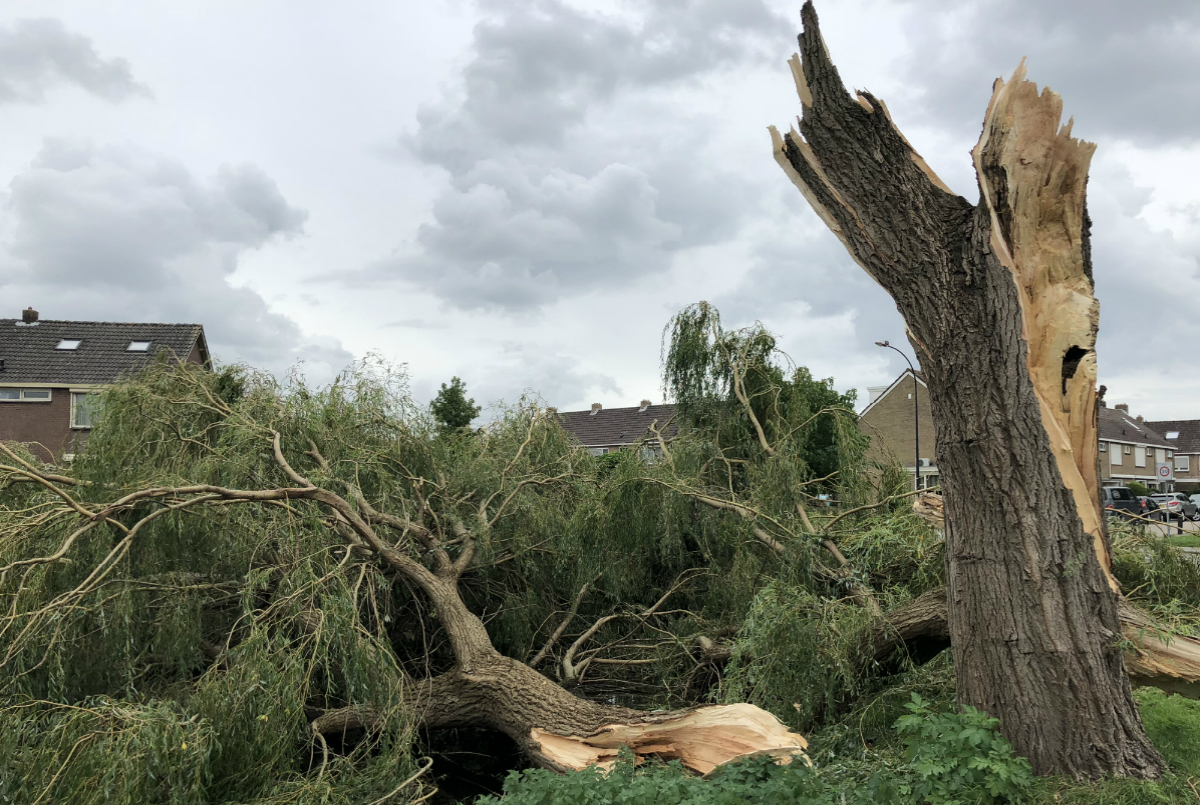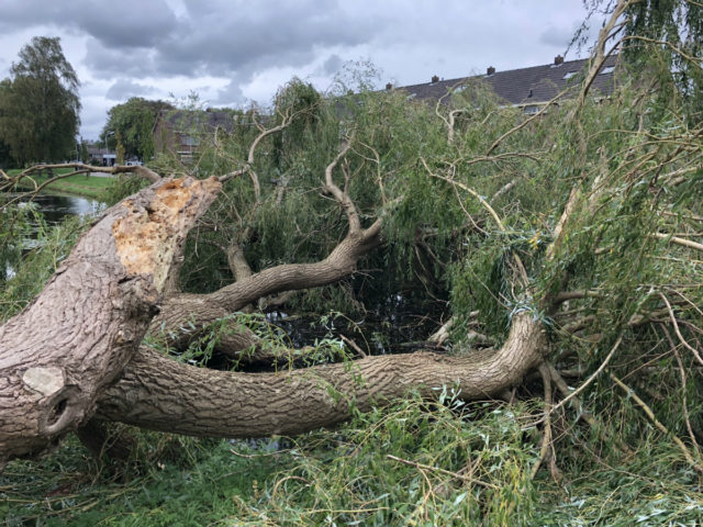 Kwam het door de harde wind, is hij getroffen door onweer of was het gewoon zijn leeftijd? Wie het weet mag het zeggen, maar de ruim veertig jaar beeld bepalende boom aan de Leendert Spaanderlaan is helaas geveld.