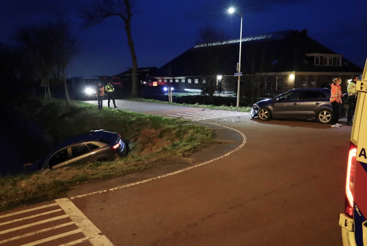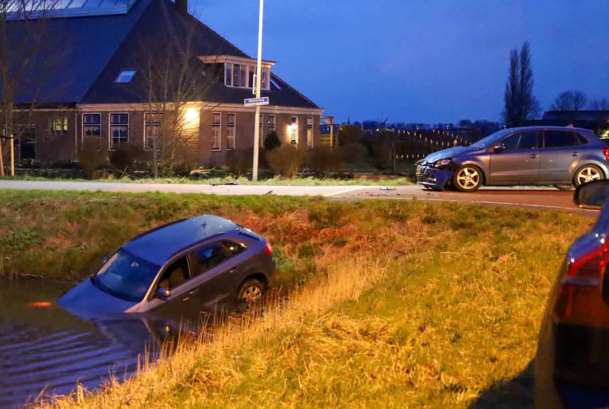 Twee personenauto’s kwamen op de kruising Oosthuizerweg/Nekkereg met elkaar in botsing. Eén van de auto’s belandde daarna in de naastgelegen sloot. Onder andere de ambulancedienst werd ingezet om hulp te verlenen aan de betrokkenen. Zeker één inzittende is in de ambulance nagekeken op eventuele verwondingen. Niemand hoefde naar het ziekenhuis vervoerd te worden.