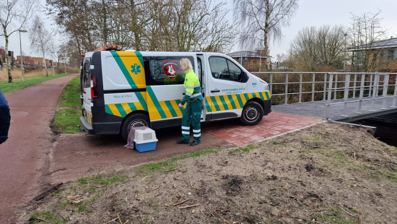 De eigenaar van het dier was zijn viervoeter al een hele nacht kwijt. Het beestje werd uiteindelijk aan het begin van de middag gevonden onder de Stokkenbrug aan het Evenaarpad in Purmerend. Het was onmogelijk om haar daar zomaar onder vandaan te halen, dus werd de brandweer ingeschakeld. Het duikteam wist haar gelukkig wel te bevrijden.