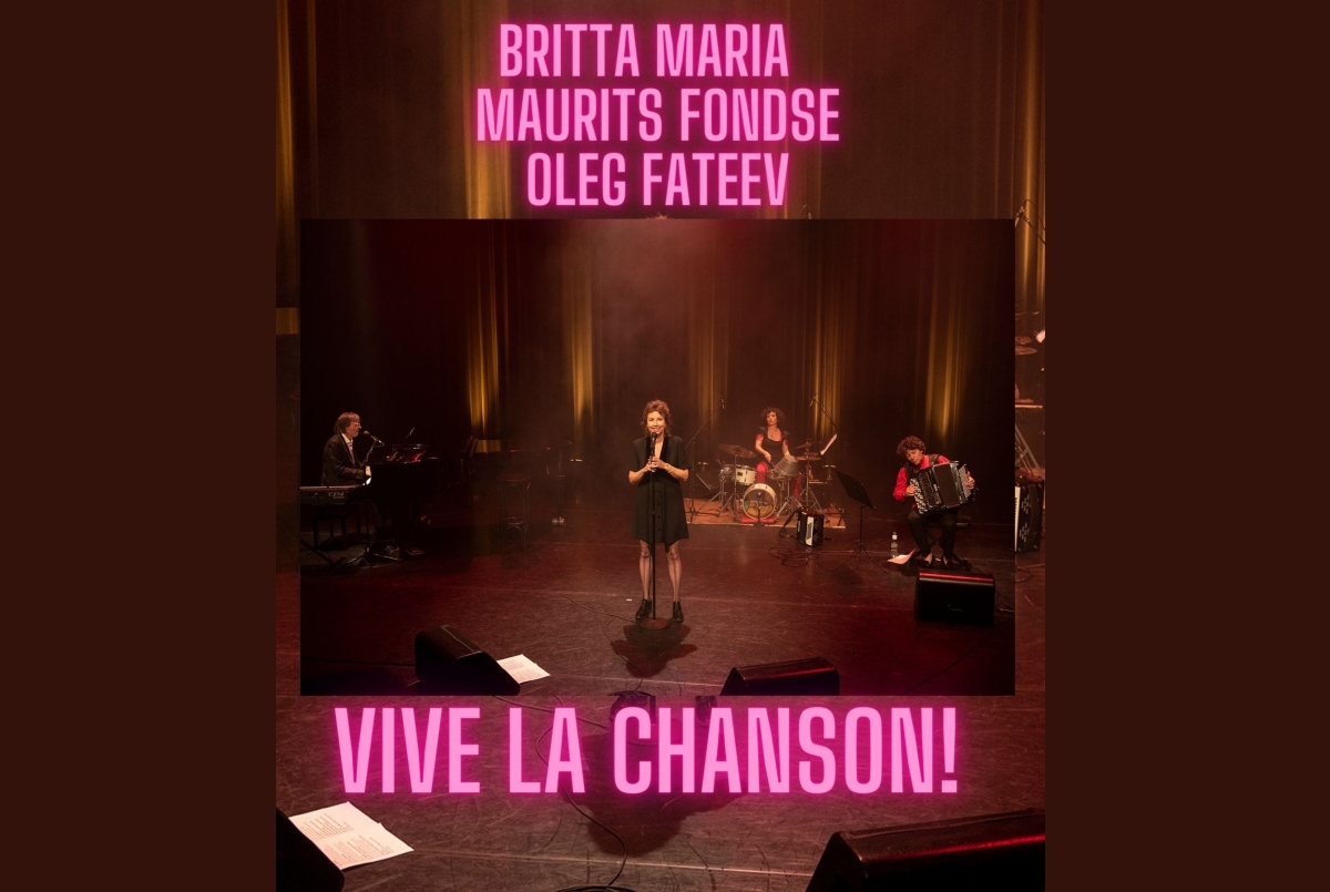 In het nieuwe theaterconcert ‘Vive la Chanson!’ spelen zangeres Britta Maria, pianist/zanger Maurits Fondse en accordeonist Oleg Fateev ontroerende en opzwepende Franse Chansons van grote Franse zangers als Aznavour, Brel, Gréco, Gainsbourg, Barbara, Yves Montand, Piaf, Zaz, Julien Clerc, Pravi e.a.