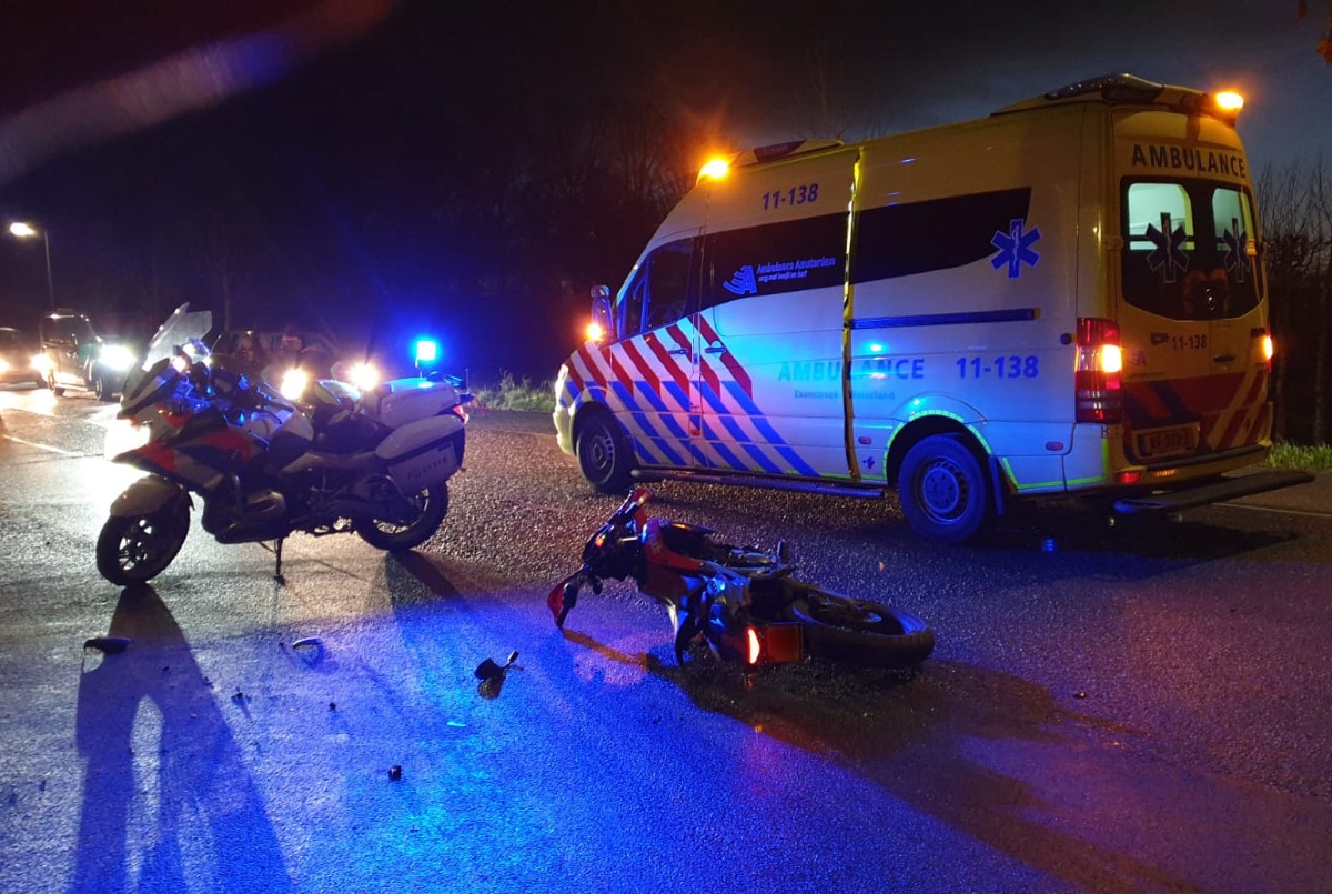 Bij de oprit naar de N244 in Middenbeemster is vandaag rond 17.15 uur een flinke aanrijding geweest tussen een crossbrommer en een auto.