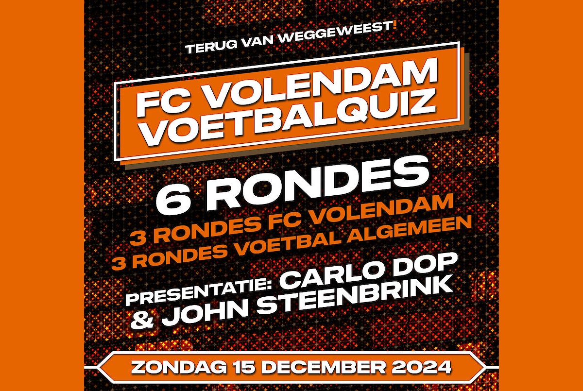 Terug van weggeweest: de FC Volendam-voetbalquiz! Zondag 15 december kunnen 30 teams het weer tegen elkaar opnemen, met mooie prijzen voor de winnaars.