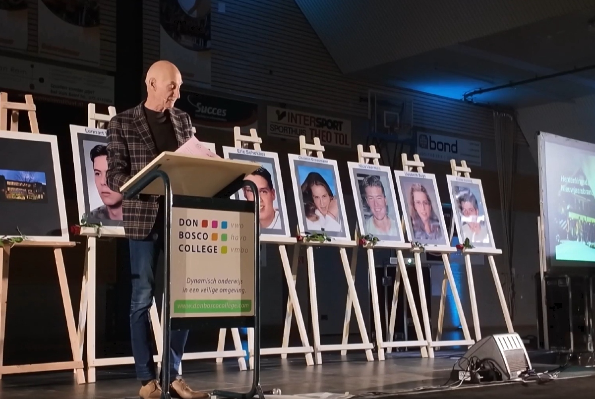 Ademloos luisteren ze: de leerlingen van het Don Bosco College in Volendam, wanneer oud-rector Jaap Braakman het woord neemt. Hij is een van de vele sprekers die aan de leerlingen vertelt hoe het leven voor en na de Nieuwjaarsbrand was. Vijfentwintig jaar later staat de school met een gezamenlijke herdenking stil bij de ramp, georganiseerd door docenten en leerlingen.