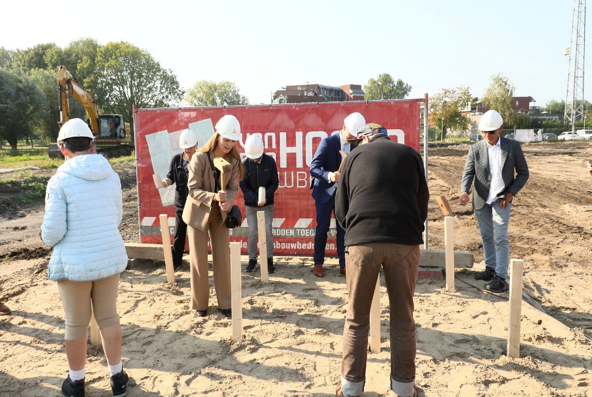 Gisteren was het zover en werd met het symbolisch slaan van de eerste paal door wethouder Marisa Kes de aftrap gegeven voor het bouwproject. In totaal zullen er op het Maria Goretti terrein 83 woningen worden gerealiseerd en zal ook de buitenruimte aan de Foksiastraat worden aangepast. Het ontwerp van zowel het gebouw als de buitenruimte zijn met grote zorg en afstemming op de omgeving opgesteld.