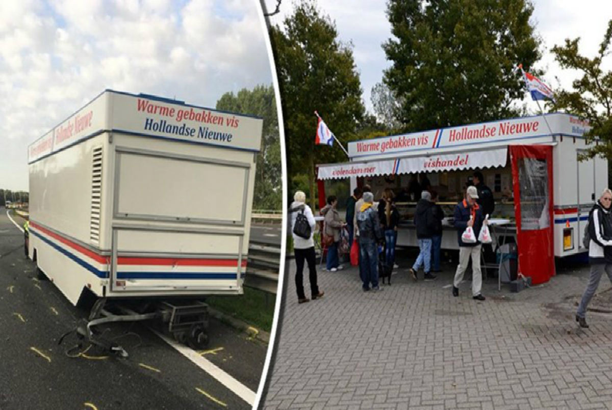 Hij was onderweg naar zijn vaste stekkie op de markt in Den Helder. Al vijf jaar staat hij bij het Ravelijncenter ‘zijn’ vis te verkopen. “Ik rij altijd compleet afgeladen richting de markt. Alleen nu ligt de kar vol glasscherven en de olie om de kibbeling in de bakken ligt overal. Opruimen wordt nog een hele klus.”