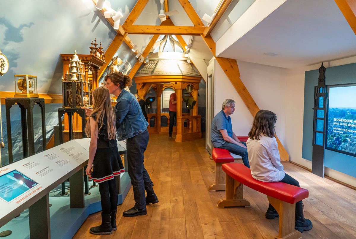 Deze torenzaal, vlak onder de klokkentoren van het museum, zoomt op interactieve manier in op de