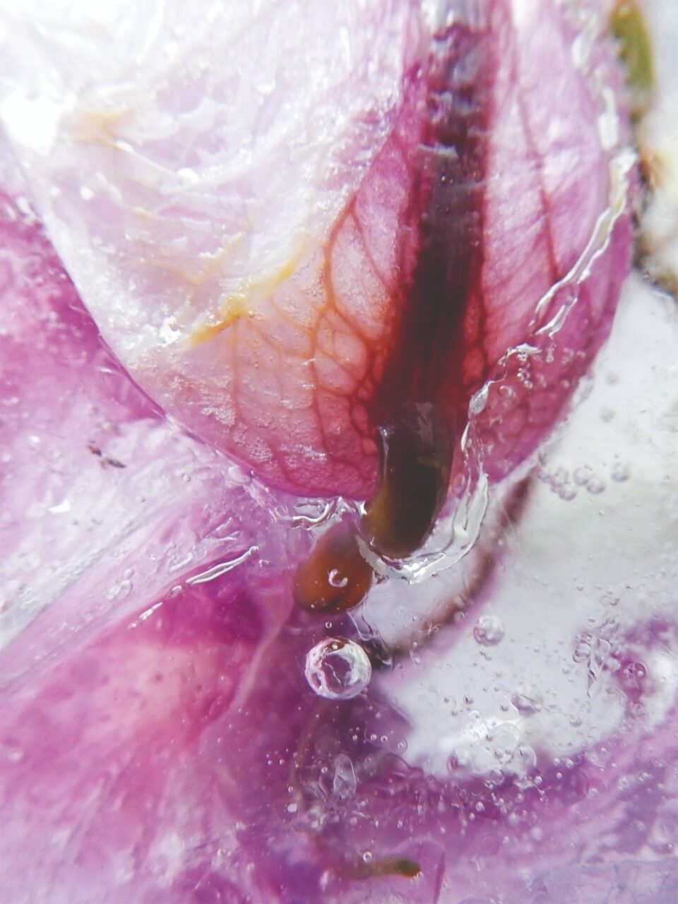 Ems Willems over haar werk: bloeien, verwelken, vergaan; dat is de levenscyclus van elke bloem. Willems weet met haar ‘frozen flowers’ die fluïde fasen te laten stollen. Gevangen in het ijs vertellen haar bloemen ons