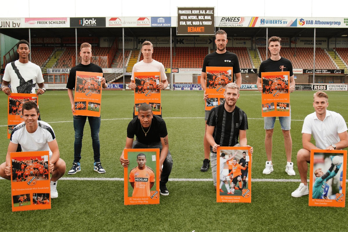 Gerry Vlak (IJsselmeervogels), Mitchel Michaelis (OFC), Jelle Duin (AZ, gehuurd), Noah Fadiga (Club Brugge, gehuurd), Nick Runderkamp, Gijs Smal (beiden nog niet bekend) en Jong FC Volendam-spelers Kevin van Gasteren (Koninklijke HFC), Stan Zoetebier (Purmersteijn), Vasco Lo-Ning-Hing (nog niet bekend) werden in het zonnetje gezet. Trainers Wim Jonk en Johan Plat hadden een mooi woordje klaar en voor alle spelers was een persoonlijke fotolijst ontwikkeld.
