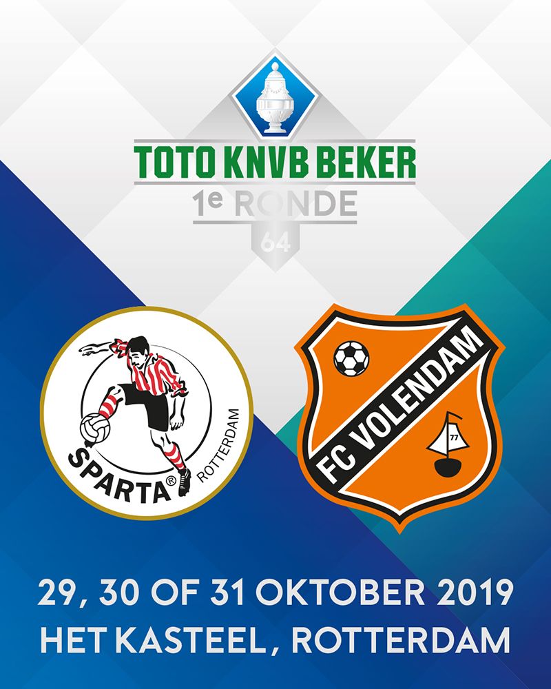 FC Volendam is in de eerste ronde van de TOTO KNVB Beker gekoppeld aan Sparta Rotterdam. De wedstrijd wordt gespeeld op dinsdag 29, woensdag 30 of donderdag 31 oktober in Rotterdam.