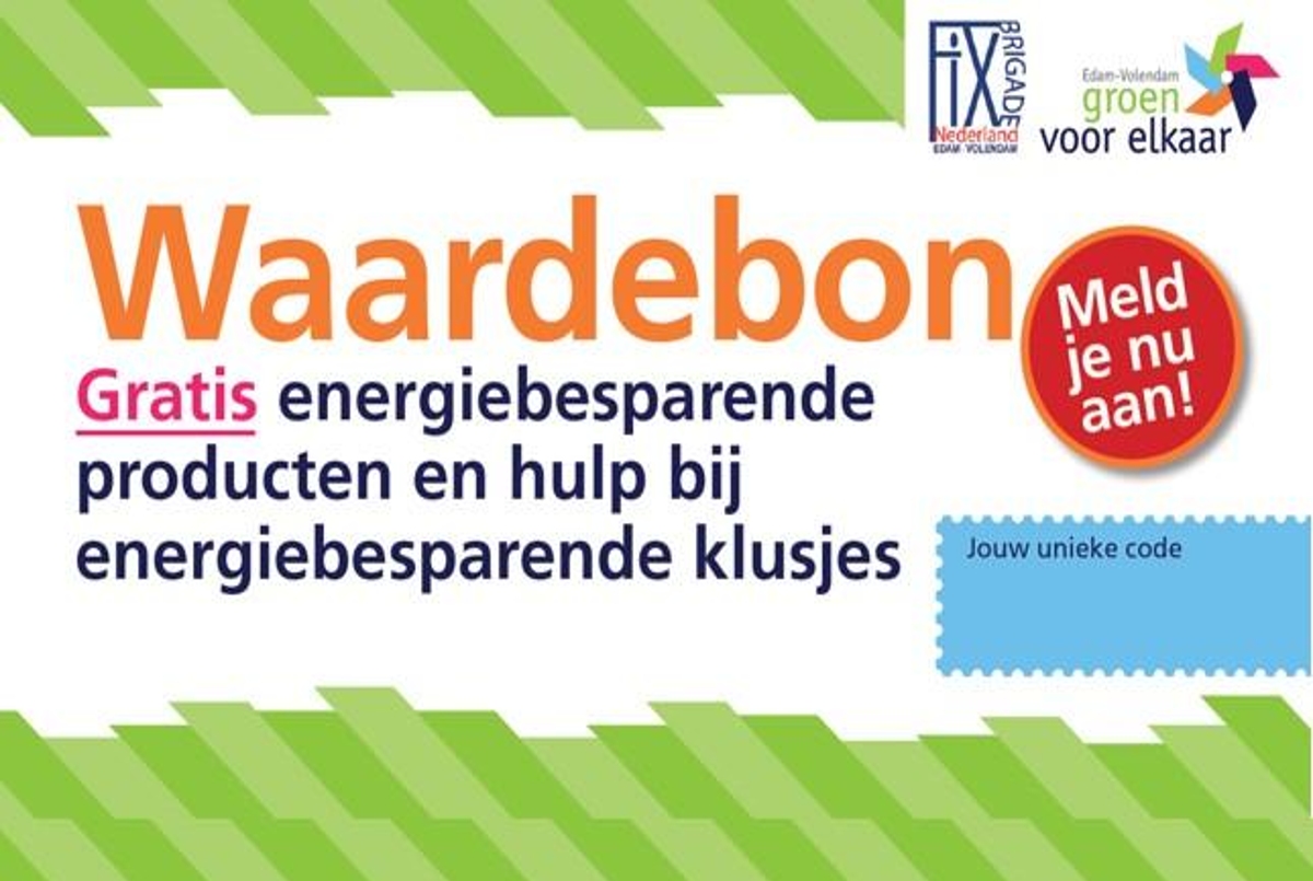 Met een FIXbrigade-waardebon kun je gratis hulp en materiaal krijgen van de FIXbrigade. Deze waardebon is bedoeld voor inwoners die de energiebesparende maatregelen zelf niet kunnen betalen. De bon is verkrijgbaar bij: