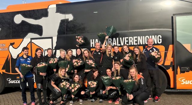 André, de chauffeur van de Volendamse spelersbus, had voorafgaand aan de wedstrijd voor iedere speelster een ‘Kampioensboeket’ meegenomen, want zo hoort dat wanneer je kampioen bent geworden! Een heel leuke geste van een geweldige chauffeur!