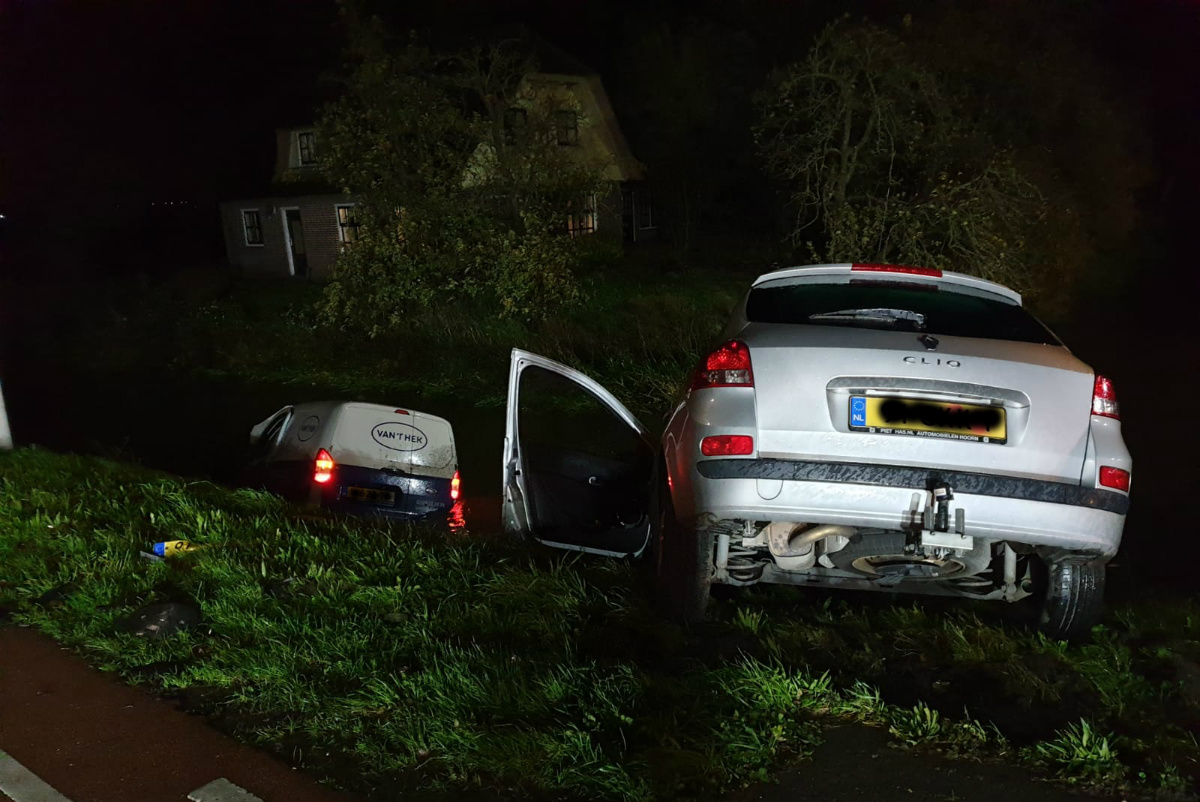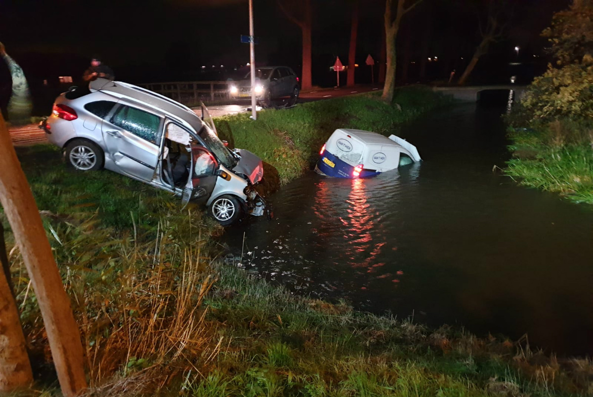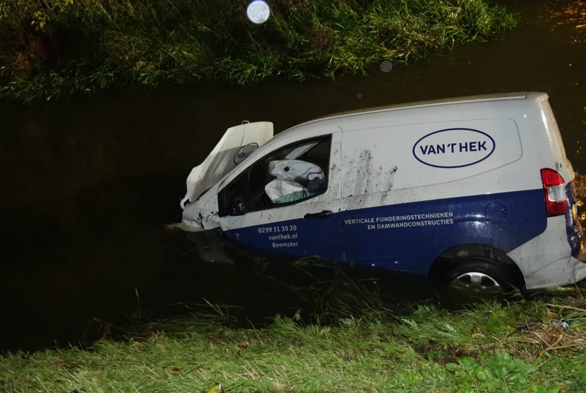 Rond 19.00 uur vanavond is op de Nekkerweg in Middenbeemster een auto te water geraakt na een botsing. Een bestelbus raakte bij dit ongeluk, ter hoogte van de Oosthuizerweg, zwaar beschadigd.