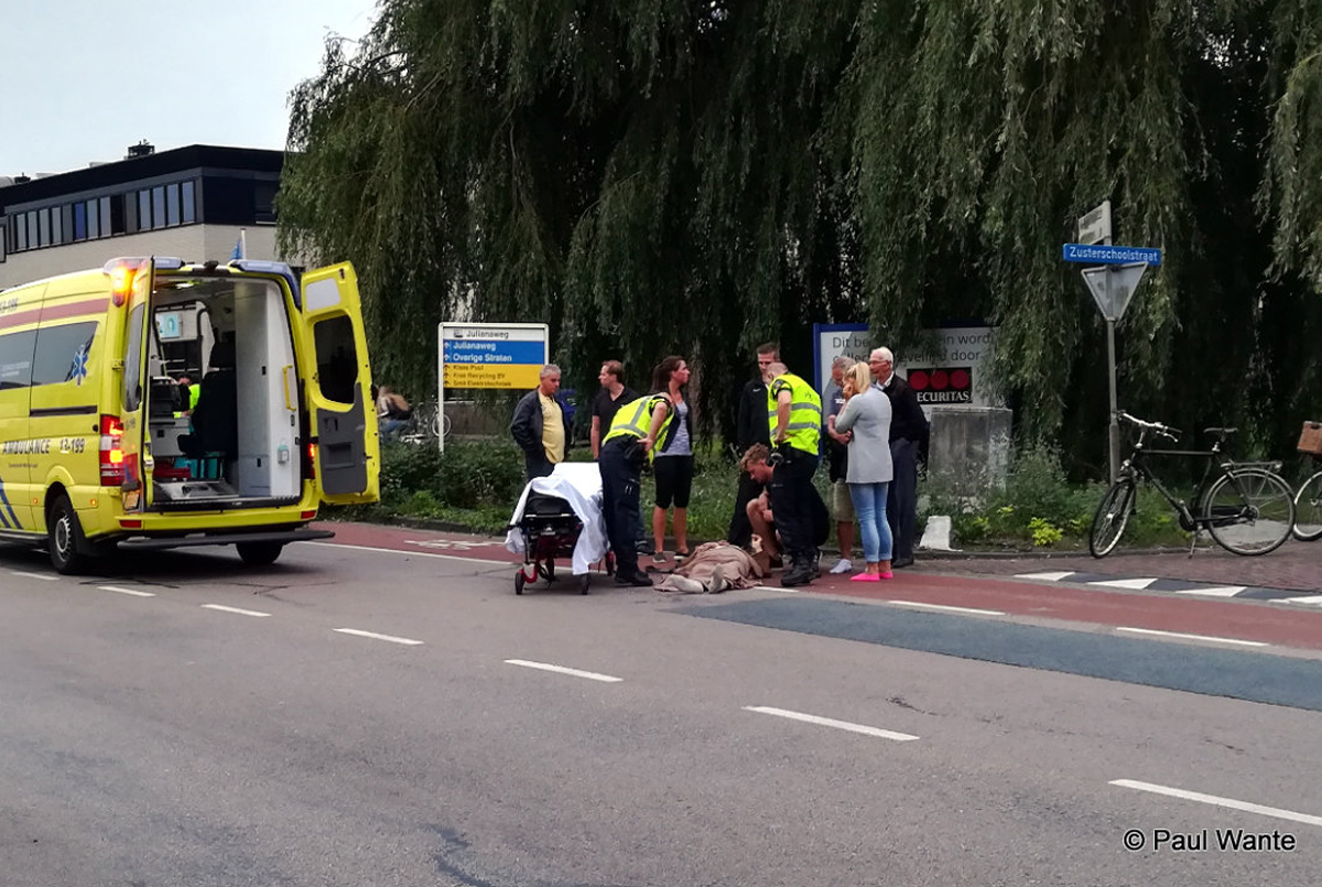Het ongeluk vond plaats op de kruising met de Visserstraat. Volgens betrokkenen zijn de voertuigen in botsing gekomen na een onverwachte manoeuvre van de hoogbejaarde bestuurder van de scootmobiel. De bestuurster van de motor kon hem daarop niet meer ontwijken en kwam met haar motor en passagier ten val.