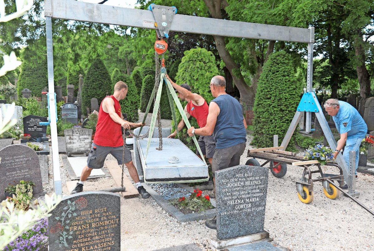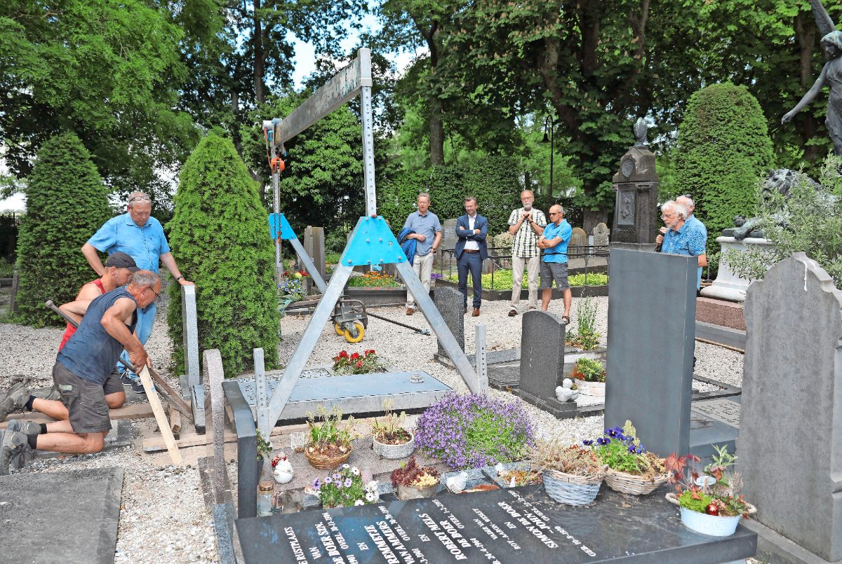 Afgelopen donderdag werd de geheel gerestaureerde steen teruggeplaatst bij het graf. Dot gebeurde in het bijzijn van Erik van den Tillaart en zijn broers Kees en Pier, wethouder Vincent Tuijp en secretaris van Artist kom binne Jan Schilder.