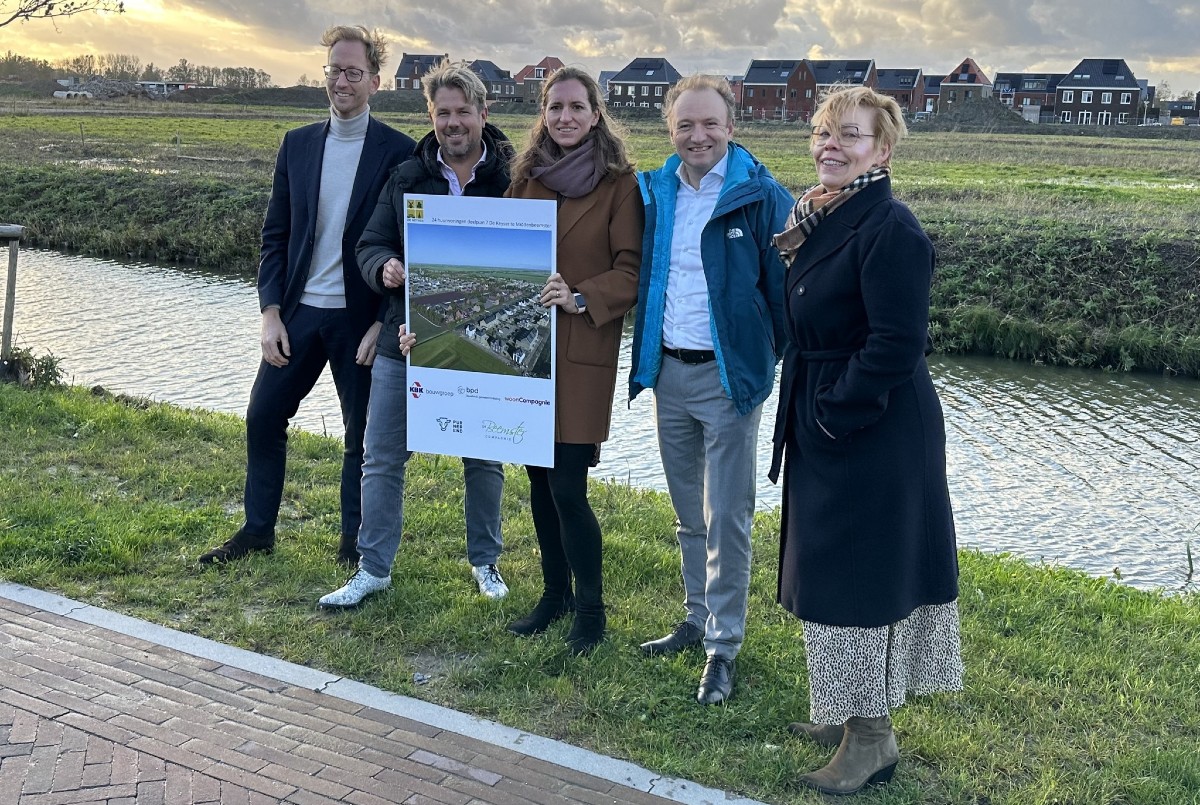 Onder toeziend oog van wethouder Verkroost en Saaf van de Gemeente Purmerend hebben ontwikkelaar BPD | Bouwfonds Gebiedsontwikkeling en woningcorporatie Wooncompagnie gisteren hun handtekening gezet voor de realisatie van 24 sociale huurwoningen in deelplan 6 en 7 van nieuwbouwwijk De Keyser in Middenbeemster.