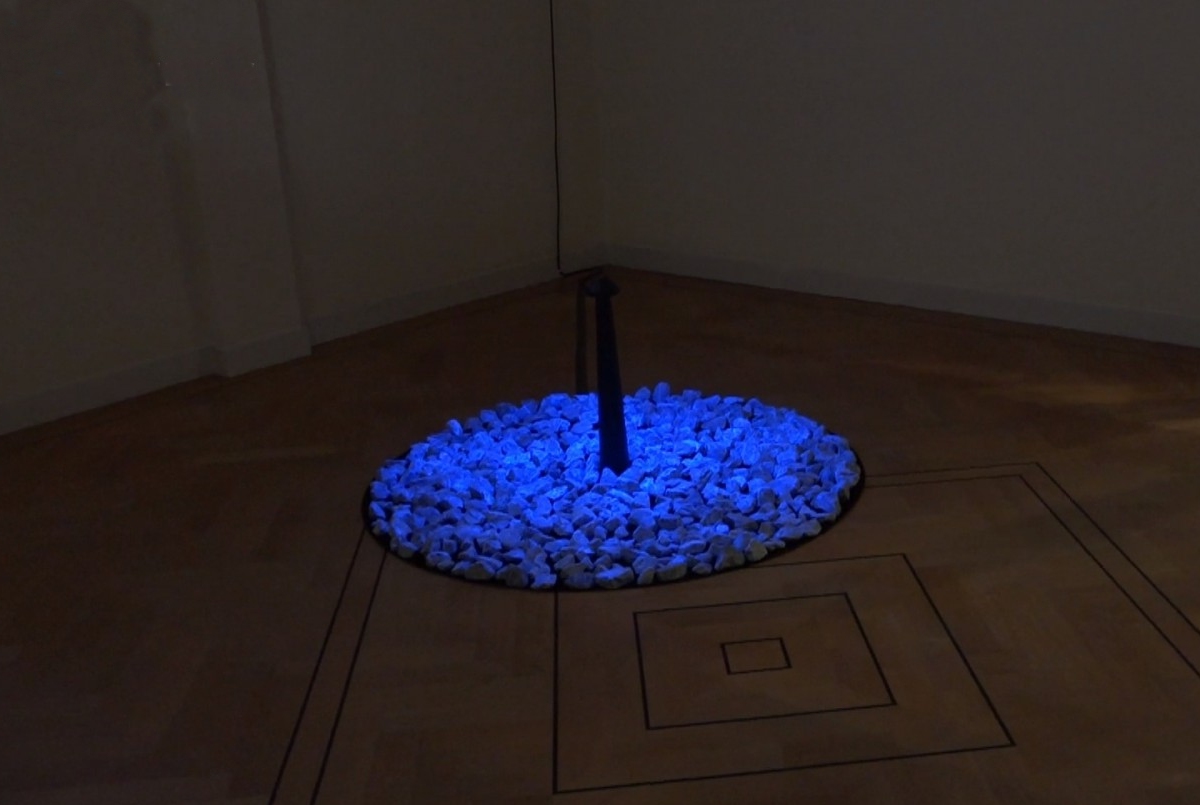 Slechts een heel klein gedeelte van de in totaal 104.000 stenen ligt in een zwarte schaal op de eerste verdieping van het Purmerends Museum. De stenen zijn onderdeel van het kunstwerk van Daan Roosegaarde. De cirkel met fluoriscerende stenen werd op 16 januari in Rotterdam onthuld.