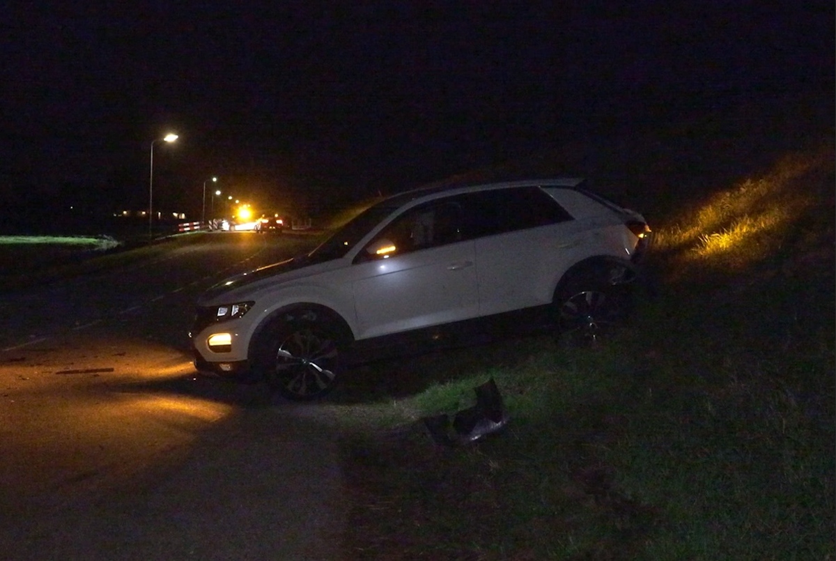 Twee auto’s raakten elkaar. Vermoedelijk reed de ene auto achterop de andere. Een van de auto’s reed nog zo’n 50 meter verder na de botsing, half over de dijk. Alle inzittenden kwamen met de schrik vrij. Ter plaatse zijn blaastesten afgenomen, waaruit bleek dat de bestuurder van de witte auto teveel gedronken had.