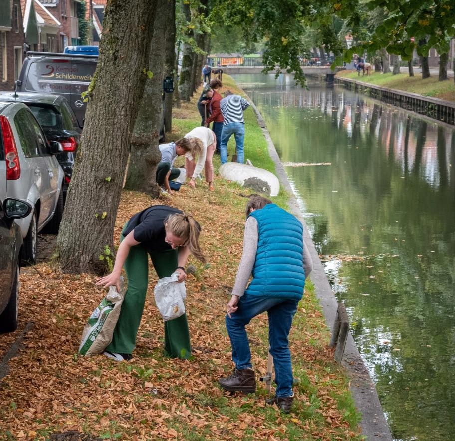 Ruim 60 buren planten vorige week zaterdag honderden bollen langs de rand van de gracht aan de Achterhaven. Het was een gezellige drukte, (nieuwe) ontmoetingen, koffie met misbaksels, samen de handen uit de mouwen terwijl Jay zorgde voor de muzikale omlijsting.