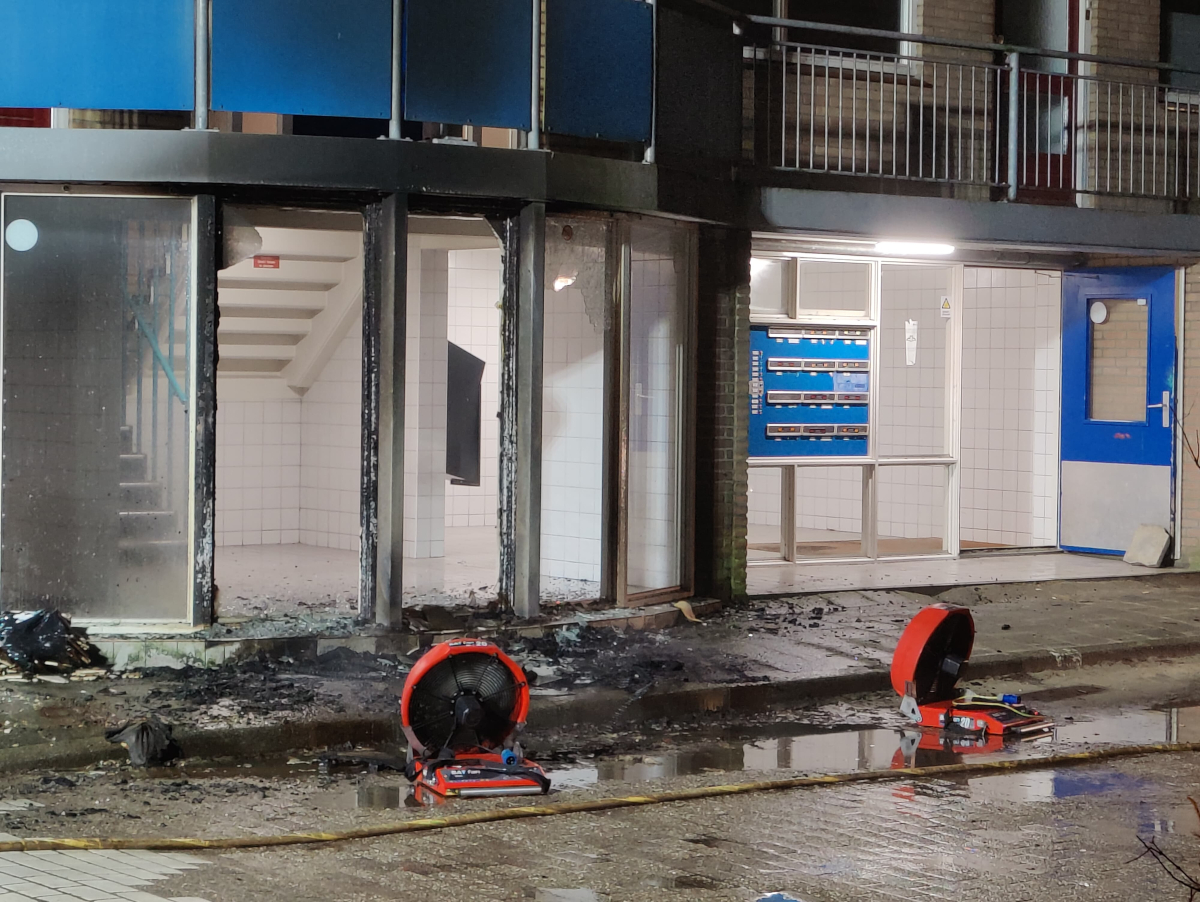 De brandende huisraad zorgde voor veel rookontwikkelingen. Doordat er drie ruiten van het trappenhuis gespringen waren drong de rook het gebouw in en rijkte tot aan de appartementen op drie hoog. De brandweer heeft grote ventilatoren ingezet om de rook uit het gebouw te krijgen.