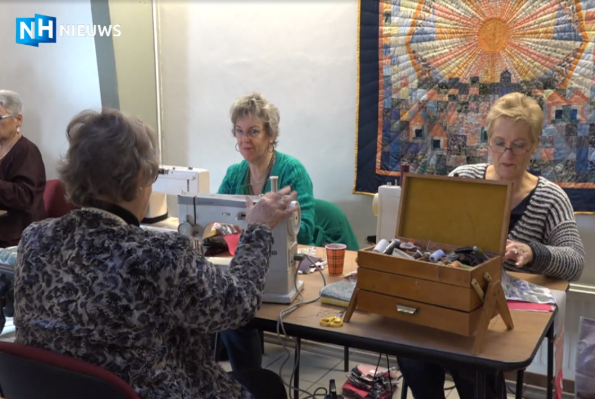 Snijden, strijken, naaien en stikken: de groep vrouwen uit Den Ilp en Landsmeer is druk in de weer. “Ik heb er al wel een paar honderd genaaid,” denkt deelneemster Netty Lebbing. Moe? “Nee hoor, ik kan nog wel even door.”