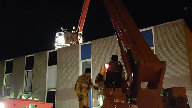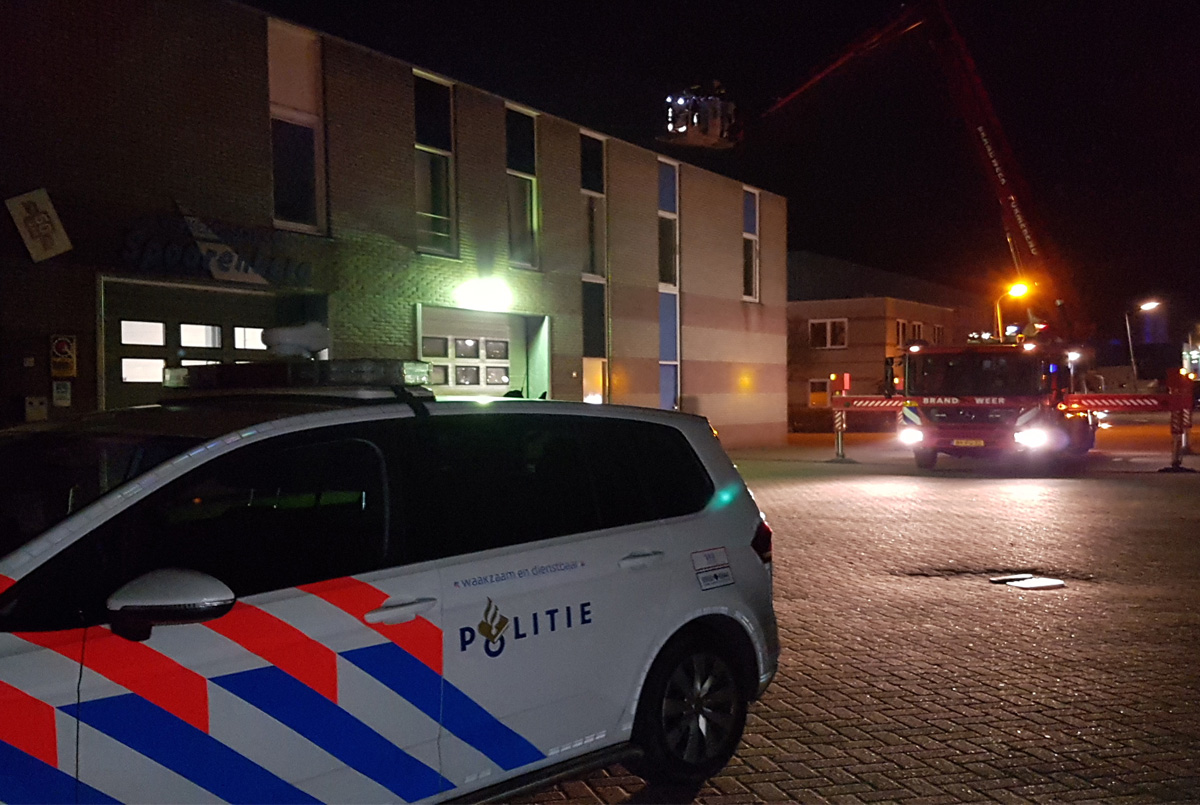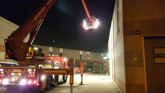In de nacht van maandag of dinsdag omstreeks half twee hoorden een man voetstappen op het dak van het bedrijfsverzamelgebouw aan de Beitelstraat in Edam. Toen hij een kijkje nam scheurde er een auto weg. De getuige had het kenteken genoteerd en zo kon de politie de auto tegenhouden en ten minste één aanhouding verrichten in Purmerend. Samen met de brandweerhoogwerker werd gekeken of er nog anderen verdachten op het waren. Dat bleek niet het geval.