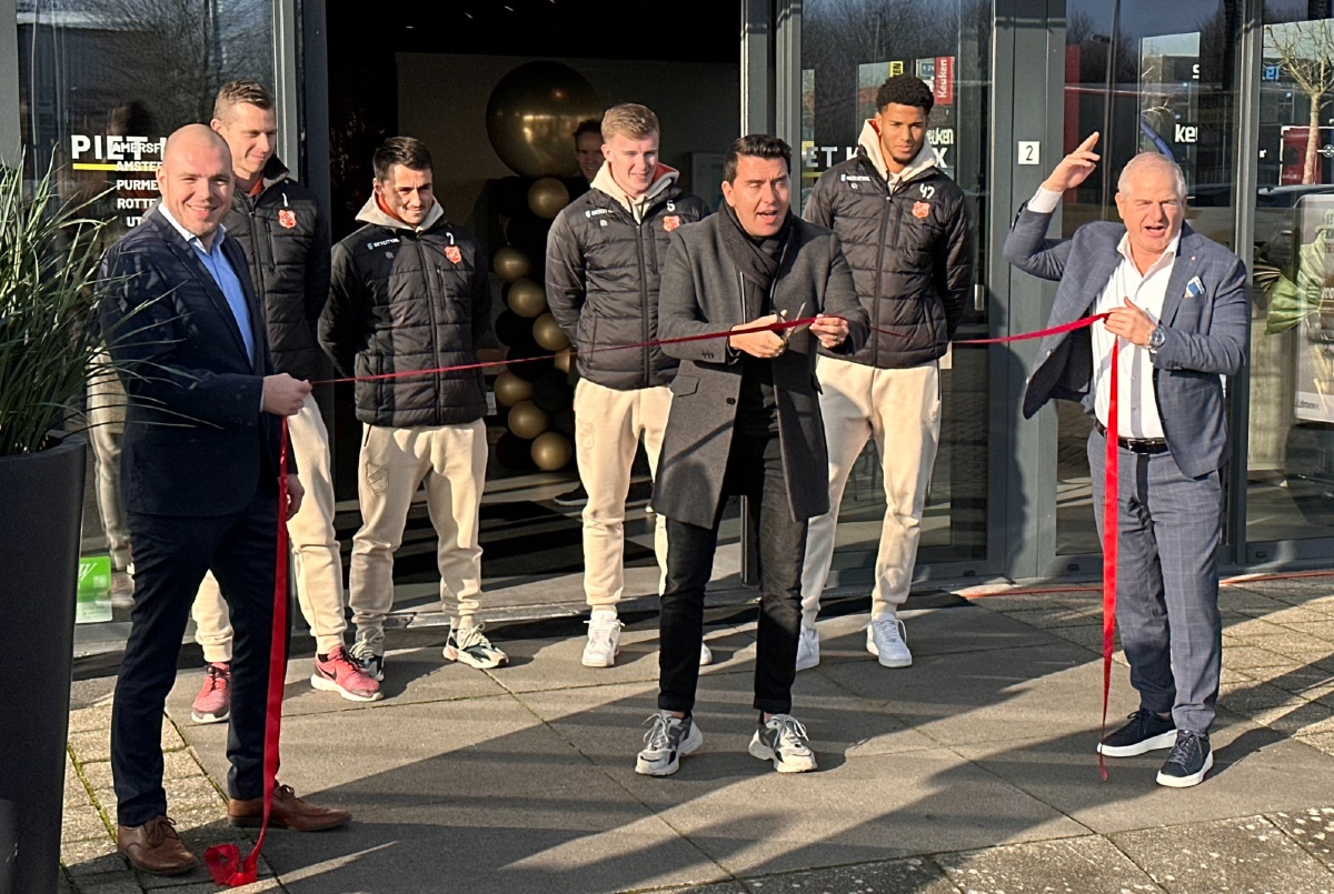 Purmerend/Volendam – FC Volendam-voorzitter Jan Smit mocht vanmiddag het lintje doorknippen bij de feestelijke opening van de vernieuwde meubelzaak Piet Klerkx/Montel in de Purmerendse Baanstee. De woonwinkel is recentelijk geheel verbouwd en opnieuw ingericht. Na de officiële openingshandeling deelden selectiespelers Robert Mühren, Daryl van Mieghem, Derry John Murkin en Xavier Mbuyamba 300 gesigneerde voetballen uit aan de aanwezige kinderen.