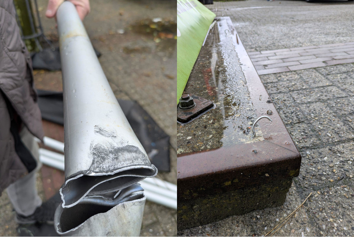 Dorpsraad Oosthuizen plaatste foto’s op haar Facebookpagina van de vernielde boom. Hoewel een enkeling opmerkte dat het wel heel hard gewaaid heeft vannacht en het ook door de wind zou kunnen zijn gebeurd, heeft de Dorpsraad geen enkele twijfel. Op de buis waar de boom aan bevestigd is is namelijk duidelijk een deel van een schoenafdruk te zien van iemand die er dus keihard tegenaan heeft getrapt.