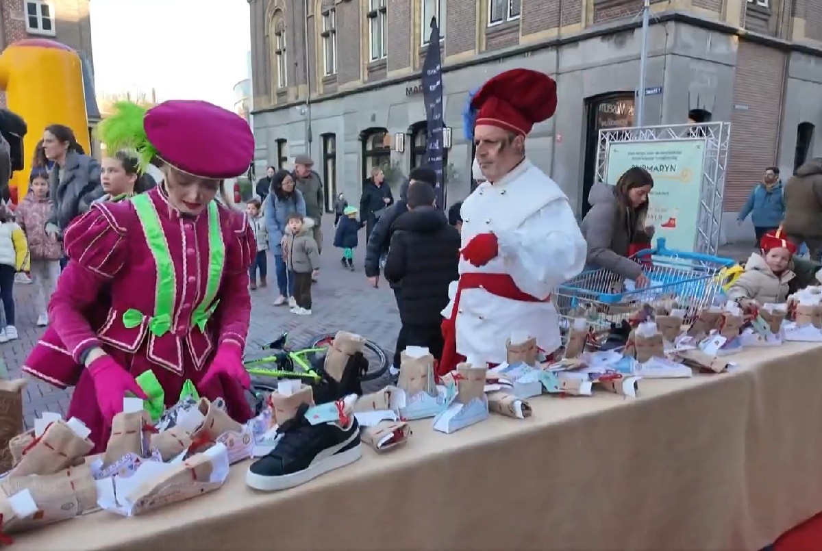 Overigens is het record niet verbroken: Purmerend zette 1191 schoentjes neer, maar ze werden wel gevuld met een cadeautje door de Pieten.