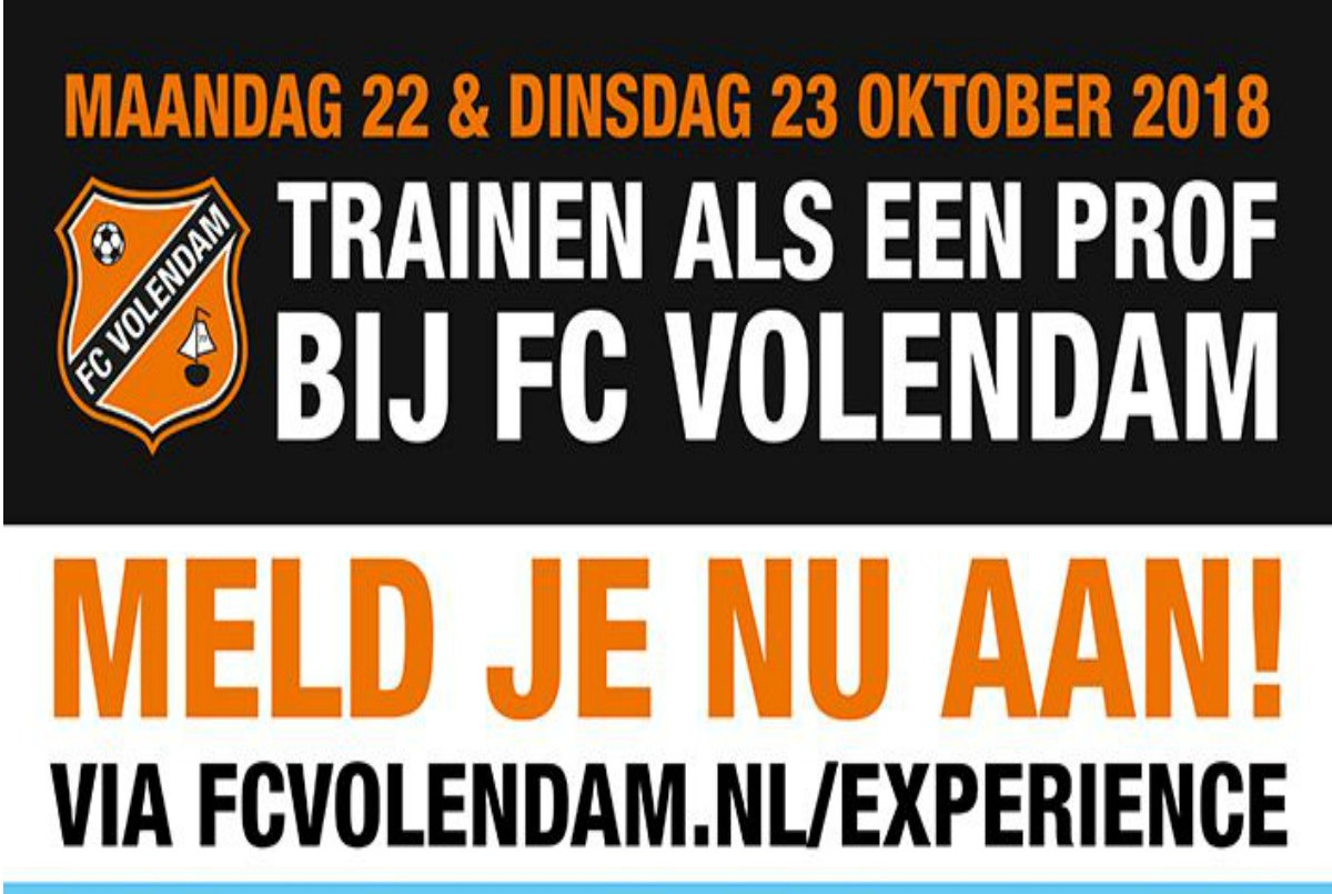 Aanmelden kan per blok, per dag of voor twee dagen. Kijk snel op: www.fcvolendam.nl/voetbal/voetbal-experience/