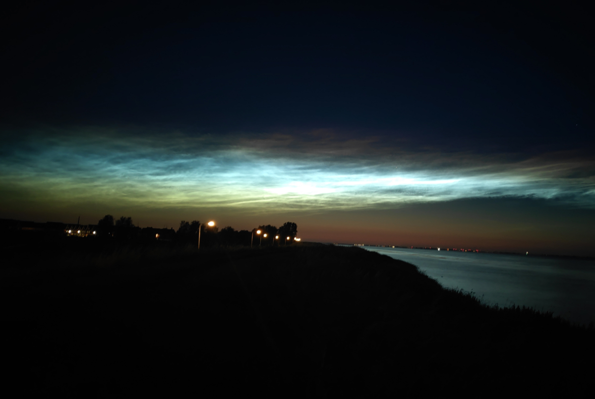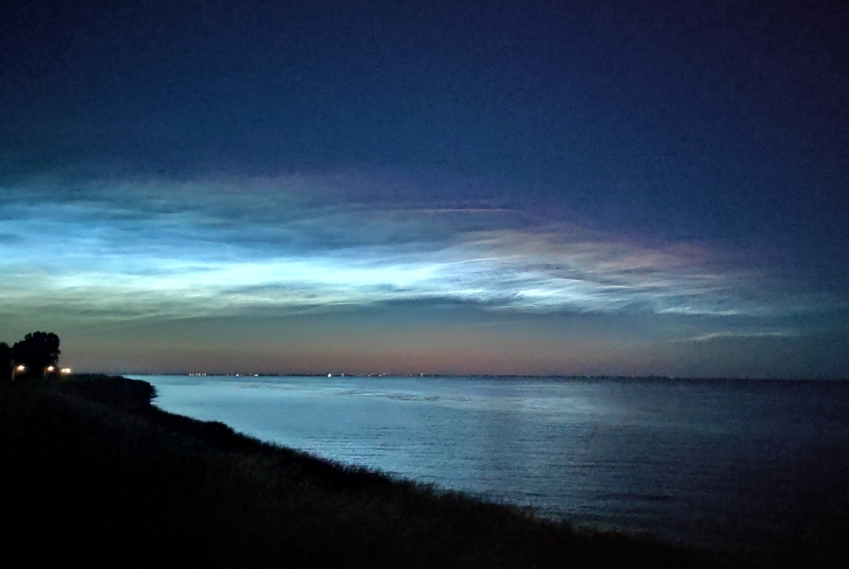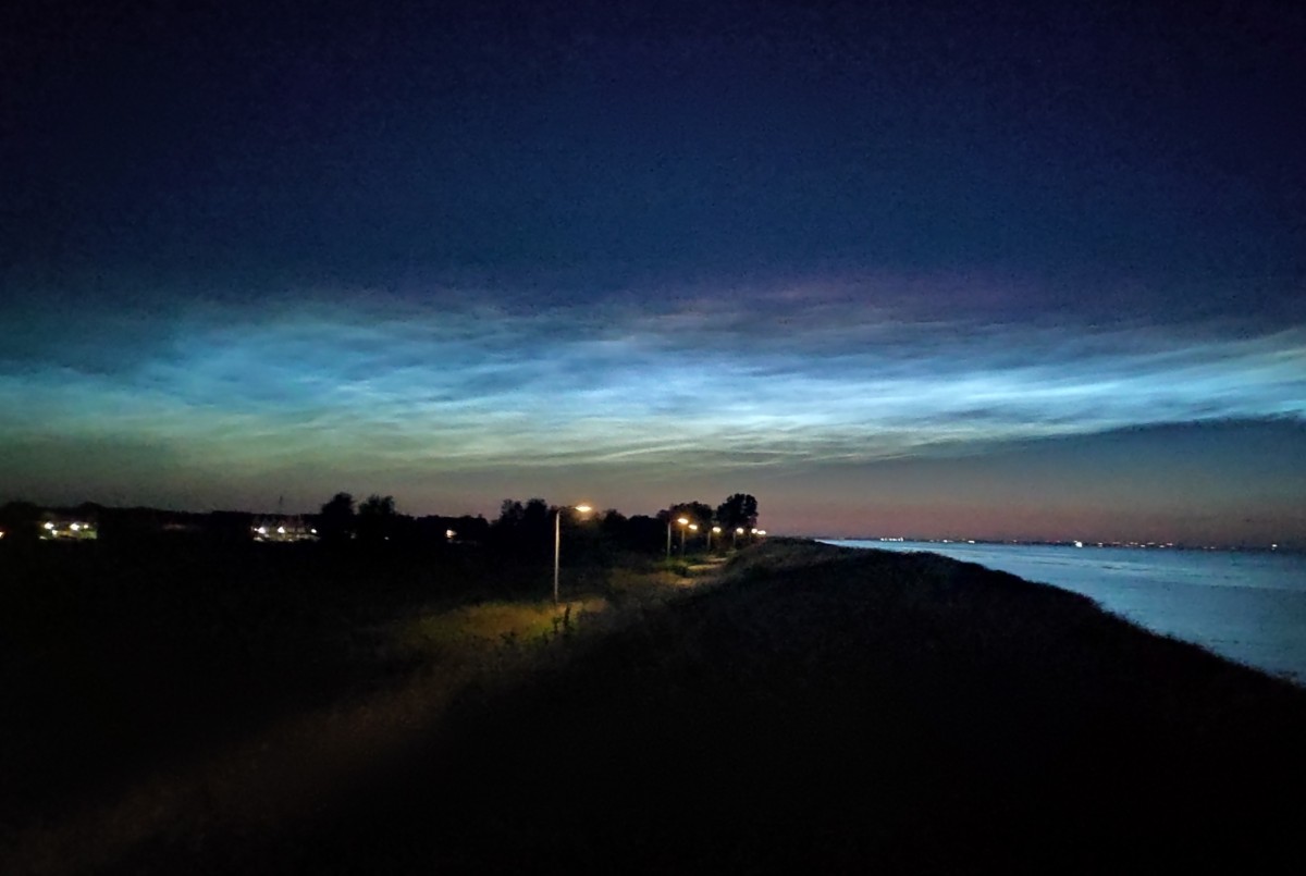 Lichtende nachtwolken zijn niet voorspelbaar, maar het loont zeker op een heldere zomeravond na zonsondergang de moeite even naar de noordoostelijke of noordwestelijke hemel te kijken. John Jonk deed dat gisteravond op de Zeedijk in Volendam en had mazzel. Hij wist de lichtende nachtwolken mooi vast te leggen.