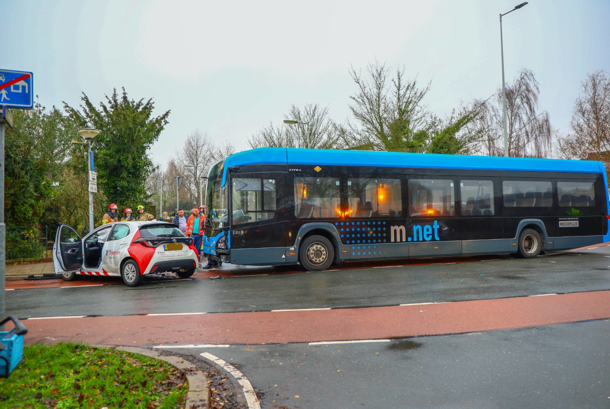 Op de kruising Scheepsbouwersweg/Zuideinde in Landsmeer heeft vanmiddag rond 14.30 uur een aanrijding plaatsgevonden tussen een personenauto en een lijnbus.