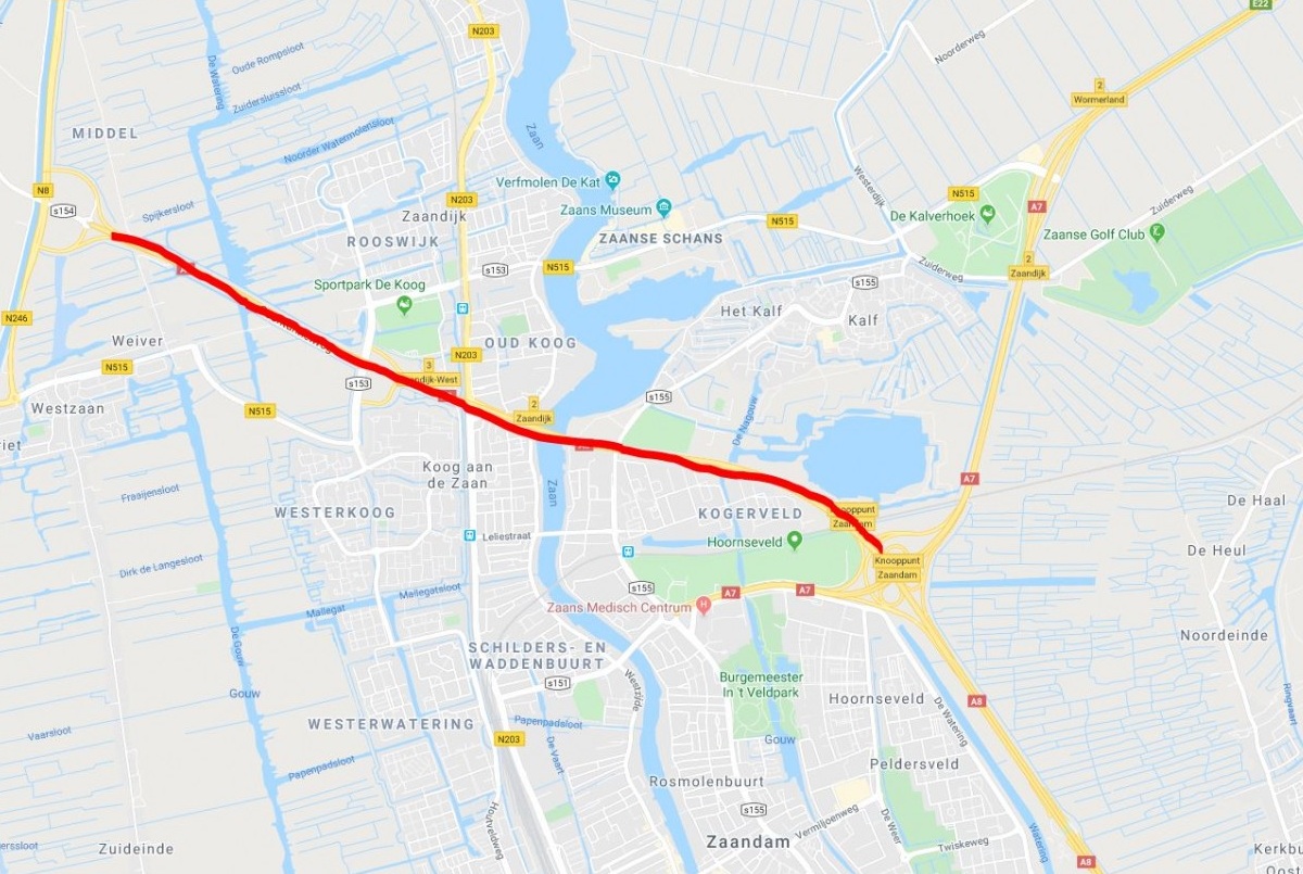 Tussen de N246 en knooppunt Zaandam moeten automobilisten flink op de rem. Normaal gesproken is de maximumsnelheid op de A8 100 kilometer per uur. De beperking geldt alleen op de rijstroken richting Amsterdam. De andere kant op mag nog wel 100 kilometer per uur gereden worden.