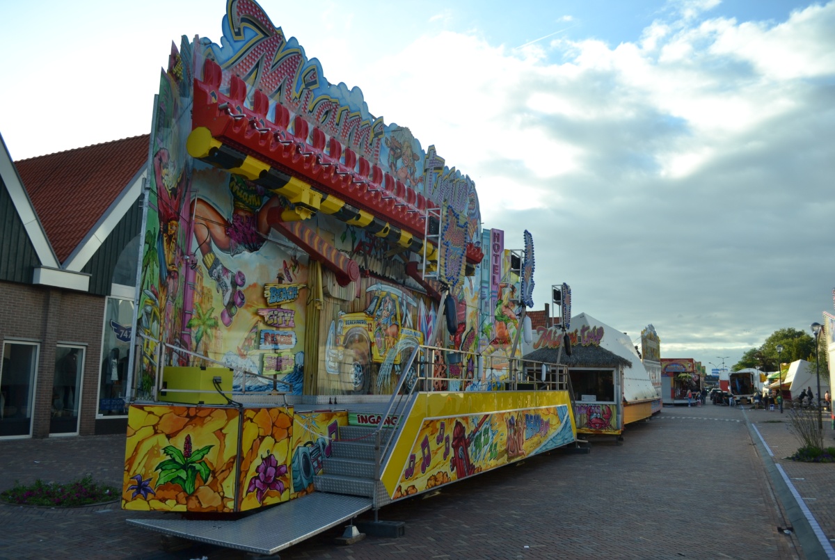 Nog twee dagen en dan kan het kermisfeest losbarsten in Volendam. Alle kermisattracties hebben nu zo een beetje hun plek gevonden en sommigen zijn zelfs al bijna startklaar.