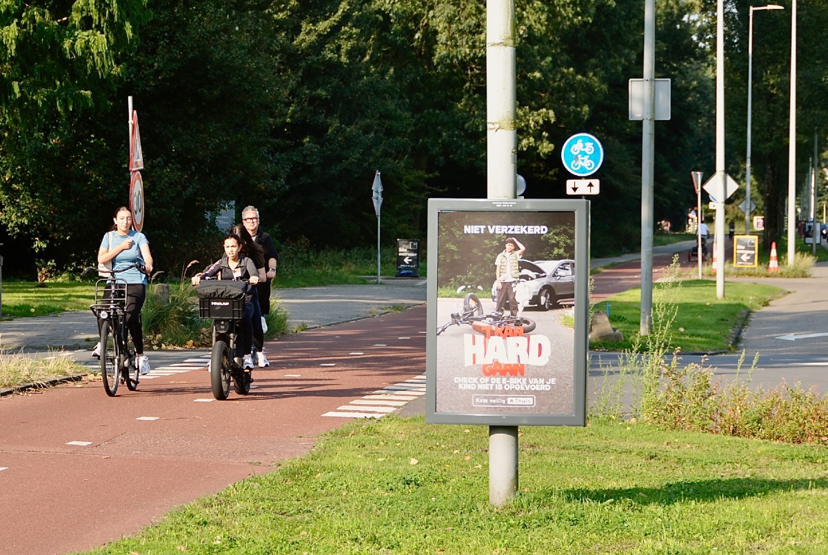 Met uitingen op straat en rondom scholen, op schoolboards op de middelbare scholen en een breed uitgezette socialmediacampagne wijst de Vervoerregio op de risico’s die je loopt als je op een opgevoerde e-bike of fatbike rijdt. Het opvoeren is niet alleen verboden, er vallen nog te vaak slachtoffers door toedoen van deze opgevoerde e-bikes.