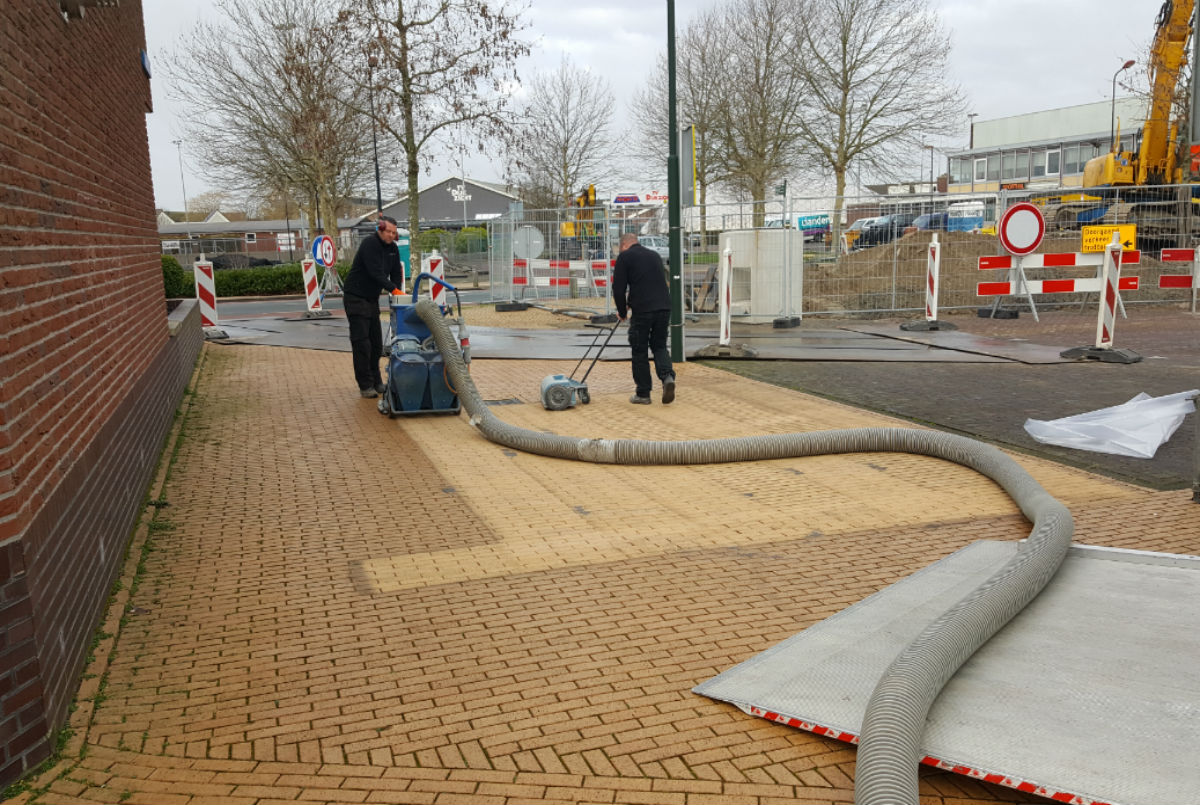 Omdat het straatwerk er nog netjes bij ligt is het compleet herbestraten met nieuwe stenen geen optie. Daarom heeft de gemeente gekozen om te kijken of het stralen van de stenen helpt om de gladheid van de gele stenen weg te nemen.