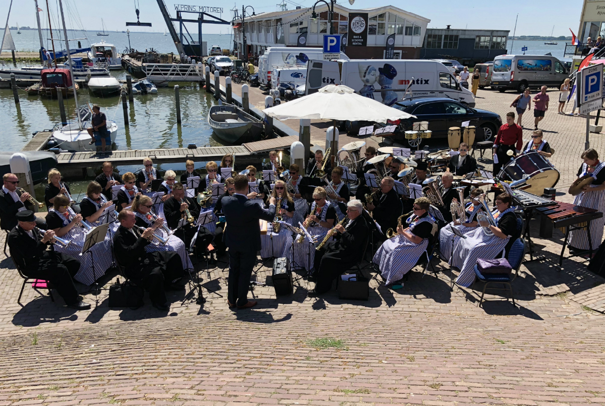 Tambourcorps Volendam en Fanfare Wilhelmina dragen graag hun steentje bij aan het overbrengen van een stukje Volendamse Cultuur. In dat kader sloegen zij de handen ineen om vandaag een gezamenlijk een buitenconcert te geven aan de Haven in Volendam.