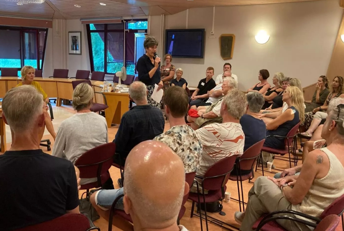 Het was een moeilijke avond voor burgemeester Marian van der Weele. Nadat zij en leden van het COA hadden uitgelegd hoe de opvang wordt geregeld mochten de aanwezigen vragen stellen. Alle vragen ging over veiligheid, of het gebrek aan veiligheid en dat er garanties moesten komen dat het goed zou gaan.