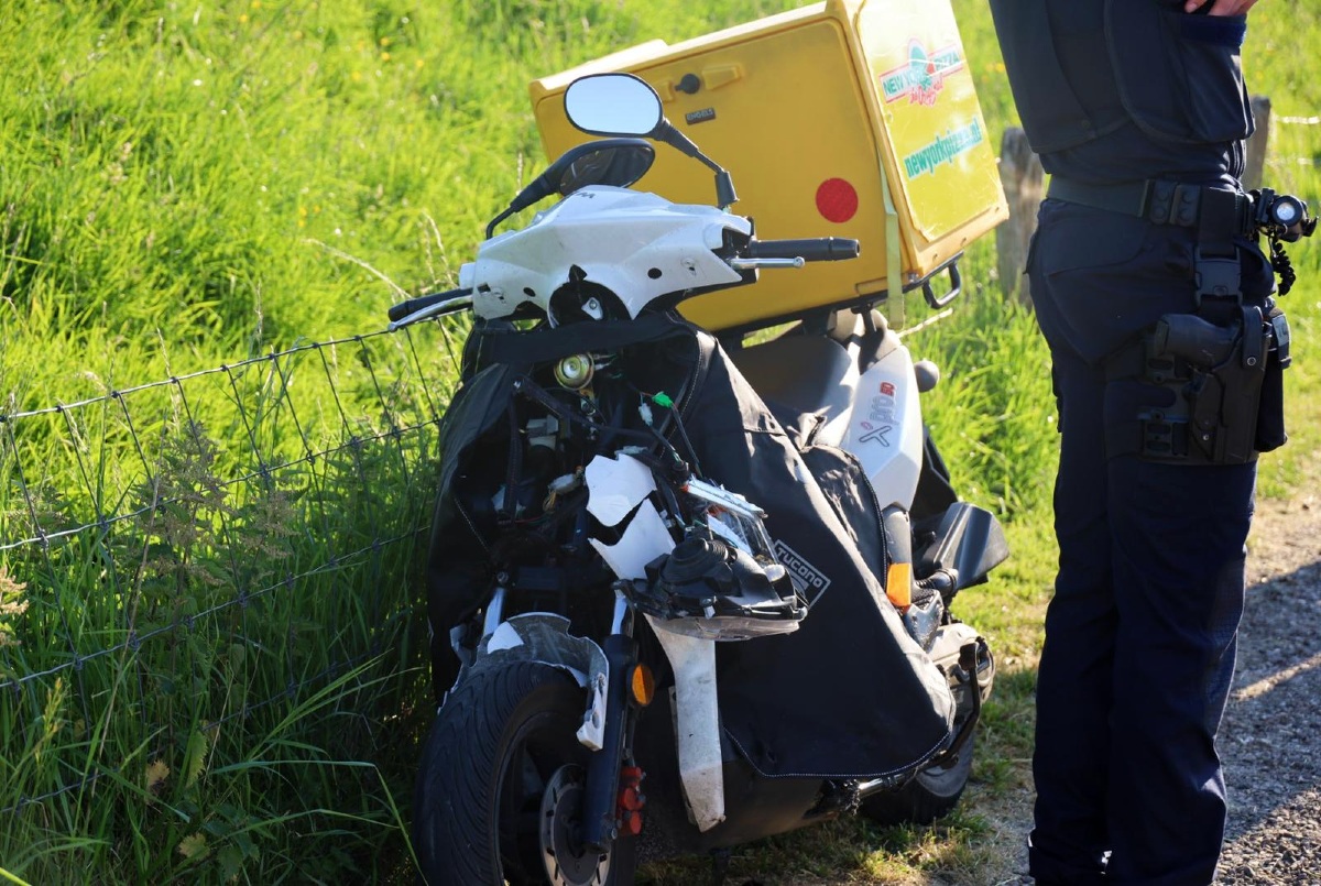 De scooterrijder, een pizzabezorger, kwam in botsing met een voertuig voor paardentransport. De traumahelikopter werd gealarmeerd om de ambulance te assisteren. Het slachtoffer is met spoed per ambulance naar het ziekenhuis gebracht.