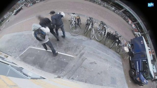 De politie heeft beelden vrijgegeven van een gewapende overval van twee mannen op een geldloper in de Koestraat in Purmerend.