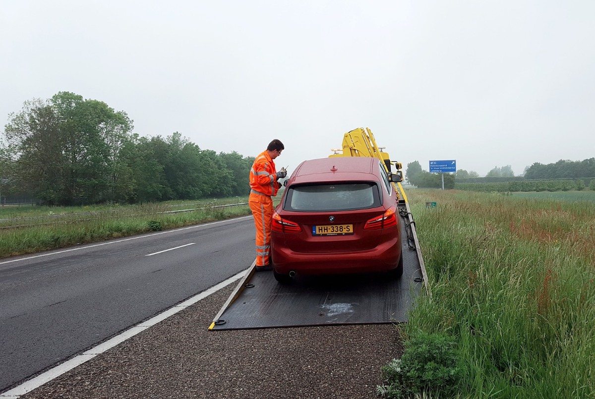 Gestrande automobilisten gaan naar een veilige locatie, zoals een tankstation of een parkeerplaats, waar hulp naartoe komt. Ze hoeven dan niet in de hitte langs de snelweg te wachten.